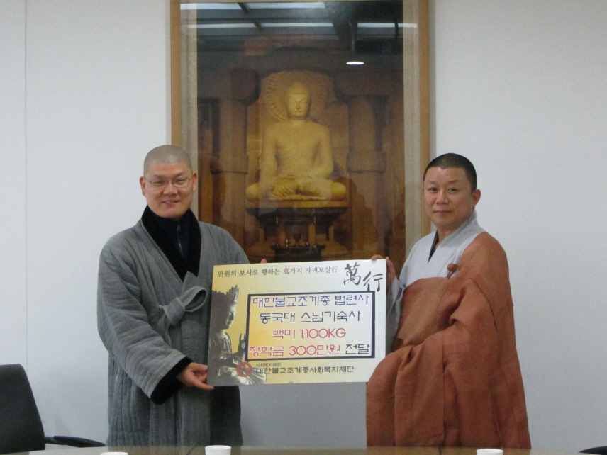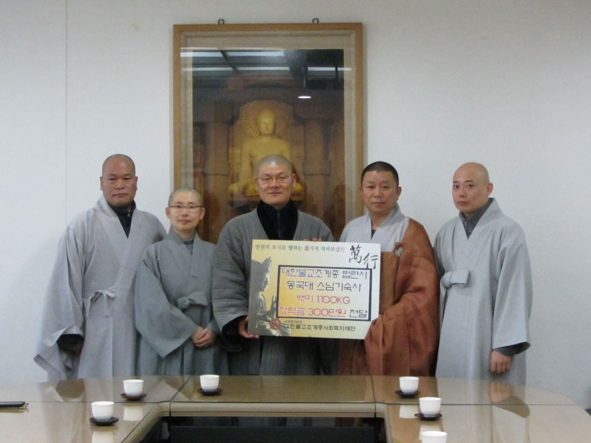 ´ëÇѺұ³Á¶°èÁ¾ ¹ý·Ã»ç¿¡¼´Â ¼öÇà°ü ¹é»ó¿ø°ú Çý±¤»ç¿¡ »ì°í °è½Ã´Â µ¿±¹´ë ÇÐÀνº´ÔµéÀ» À§ÇØ ¹é¹Ì ÃÑ 1,100Kg(55Æ÷´ë) Àü´Þ½ÄÀ» 1¿ù 15ÀÏ Ãѹ«¿ø 2Ãþ ȸÀǽǿ¡¼ ±³À°¿ø ±³À°ºÎÀå Áø°¢½º´Ô°ú ¹ý·Ã»ç ÁÖÁö ¿ø°æ½º´Ô µîÀÌ µ¿ÂüÇϽа¡¿îµ¥ ÁøÇàµÇ¾ú½À´Ï´Ù.