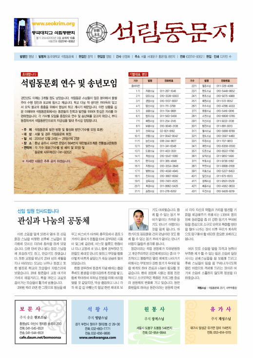 ¼®¸²µ¿¹®Áö 10È£°¡ ¹ßÇà µÇ¾ú½À´Ï´Ù. ÁÖ¼Ò°¡ È®º¸µÈ µ¿¹® ¼¿ï 497¸í°ú °æÁÖ 175ºÐ¿¡°Ô 10¿ù 13ÀÏ ¹ß¼ÛÀ» ¸¶¹«¸® Çß½À´Ï´Ù. ¹Ìó ¸ø ¹ÞÀ¸½Å ºÐ²²¼´Â ¿¬¶ô ÁÖ½Ã¸é º¸³» µå¸®°Ú½À´Ï´Ù. °¨»çÇÕ´Ï´Ù.