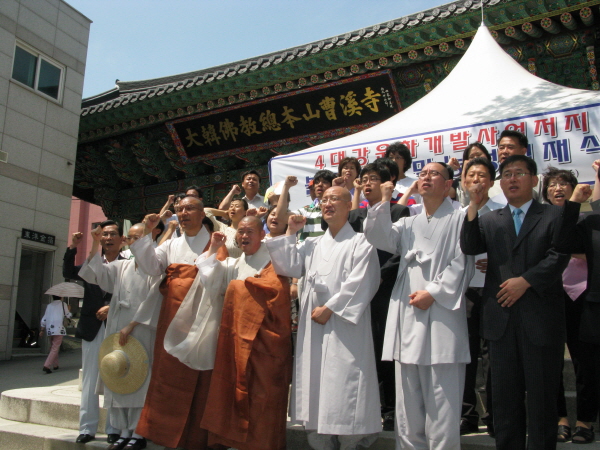 ºÒ±³È¯°æ¿¬´ë¸¦ ºñ·ÔÇØ ½ÇõºÒ±³Àü±¹½Â°¡È¸, ´ëÇѺұ³Ã»³âȸ µî 21°³ ´Üü°¡ Âü¿©ÇÏ´Â ºÒ±³½Ã¹Î»çȸ´Üü¿¬¼®È¸ÀÇ´Â ¿À´Ã(7¿ù24ÀÏ) ¿ÀÀü11½Ã ¼­¿ï Á¶°è»ç ÀÏÁÖ¹® ¾Õ¿¡¼­ ¡®4´ë°­¿îÇϰ³¹ß»ç¾÷ ÀúÁö ºÒ±³°è õ¸·³ó¼º¡¯ ÀÔÀç½ÄÀ» °®°í, 4´ë°­ »ç¾÷ ¹Ý´ë¿¡ ºÒ±³°è°¡ Àû±Ø ³ª¼³ °ÍÀ» °áÀÇÇß´Ù. µµ¼±»ç, ºÀÀº»ç, ºÒ±¤»ç, ¿Áõ¾Ï, È­°è»ç µî ¼­¿ï ÁÖ¿ä »çÂû¿¡¼­µµ ¿îÇÏ ¹Ý´ë ³ó¼º¿¡ µ¿ÂüÇϱâ·Î Çß´Ù.