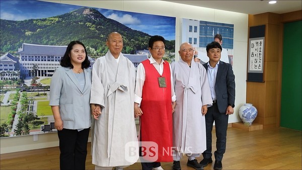 ´ëÀü»ç ÁÖÁö ¹ýÀϽº´Ô(BBS ´ë±¸ºÒ±³¹æ¼Û ¿î¿µÀ§¿øÀå)°ú Àΰ¢»ç ÁÖÁö È£¾Ï½º´Ô(ºÒ±³¹®È­À翬±¸¼ÒÀå)Àº À̳¯ ÀÌö¿ì °æºÏµµÁö»ç¿¡°Ô ¼º±ÝÀ» Àü´ÞÇÑ µÚ Â÷´ãÀ» °¡Áö¸ç ÀúÃâ»ý ±Øº¹°ú ÀüÅ빮ȭ À¯»êÀÇ º¸Àü°ú °è½Â, Ȱ¿ë¿¡ ´ëÇÑ ÀǰßÀ» ±³È¯Çß½À´Ï´Ù.