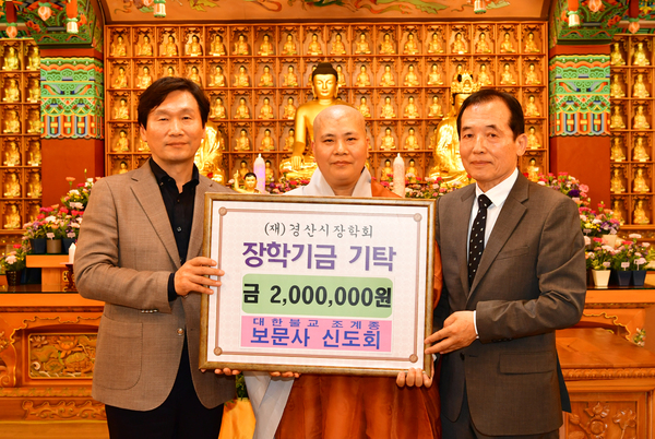 ´ëÇѺұ³ Á¶°èÁ¾ º¸¹®»ç(ÁÖÁö ¹ÎÈ«½º´Ô) ½ÅµµÈ¸(ȸÀå ÃÖ¿µ¹è)´Â Áö³ 15ÀÏ °æ»ê½ÃÀåÇÐȸ(ÀÌ»çÀå Á¶ÇöÀÏ)¿¡ ÀÎÀç À°¼ºÀ» À§ÇÑ ÀåÇÐ±Ý 2¹é¸¸¿øÀ» ±âŹÇß´Ù.