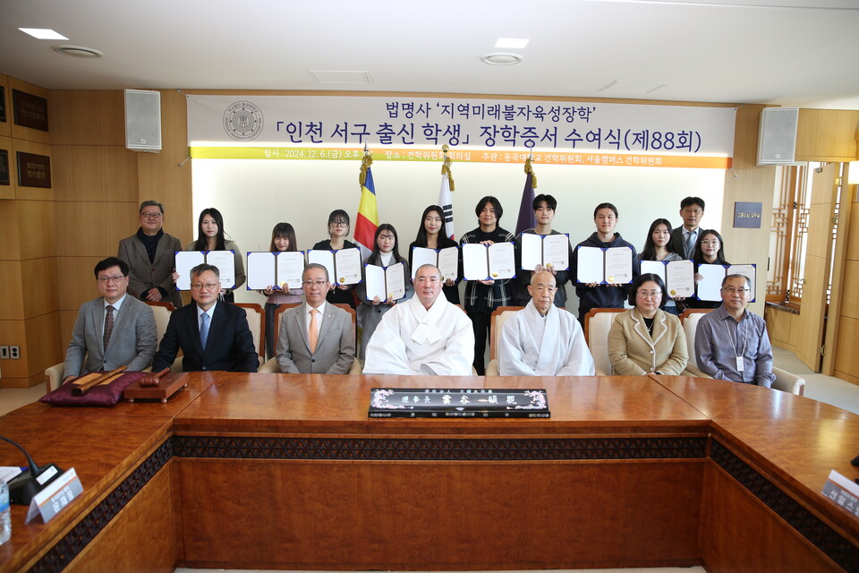 Çб³¹ýÀÎ µ¿±¹´ëÇб³ °ÇÇÐÀ§¿øÈ¸´Â 12¿ù6ÀÏ µ¿±¹´ë º»°ü 5Ãþ °ÇÇÐÀ§¿øÈ¸ ȸÀǽǿ¡¼ '¹ý¸í»ç Áö¿ª¹Ì·¡ºÒÀÚÀ°¼ºÀåÇÐ ÀåÇÐÁõ¼ ¼ö¿©½Ä'À» °³ÃÖÇß´Ù°í ¹àÇû´Ù. ÀÎõ ¹ý¸í»ç°¡ µ¿±¹´ë¿¡ 1000¸¸¿øÀ» ±âºÎÇß´Ù.