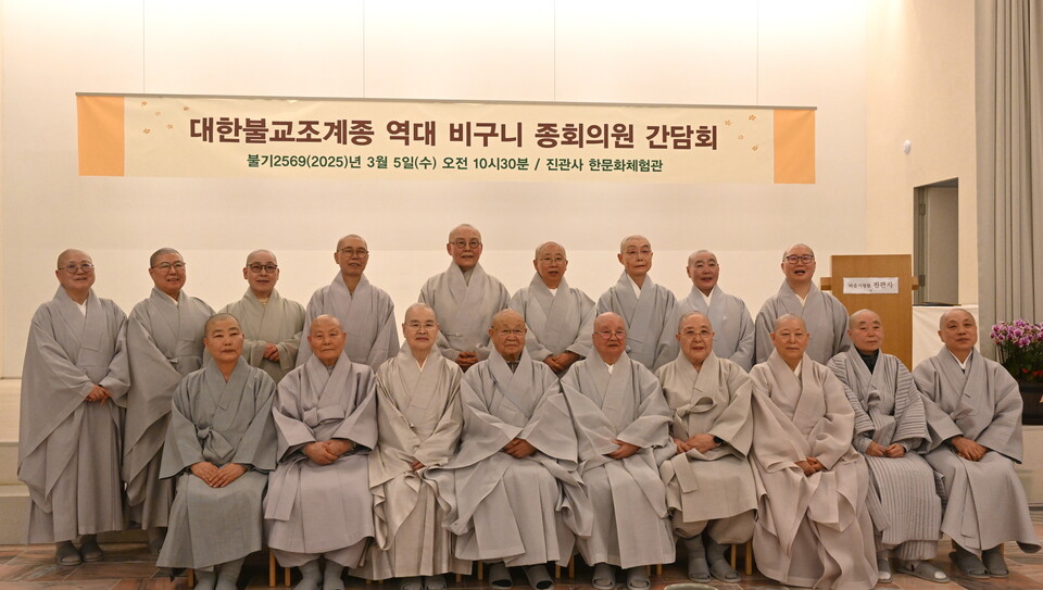 Á¶°èÁ¾ Á¦1´ë Áß¾ÓÁ¾È¸ºÎÅÍ ÇöÀç 18´ë±îÁö Àü¡¤ÇöÁ÷ ºñ±¸´Ï Á¾È¸ÀÇ¿ø ½º´ÔµéÀÌ ÇÑ ÀÚ¸®¿¡ ¸ðÀÎ °ÍÀº À̹øÀÌ Ã³À½ÀÌ´Ù. ¼±¹è ÀÇ¿ø ½º´Ô°ú ÇöÁ÷ ÀÇ¿ø ½º´ÔµéÀÌ ÇÔ²² ¼ÒÅëÇϸç ÈÇÕÀ» ´ÙÁüÇϰí, ³ª¾Æ°¡ ºñ±¸´Ï À§»óÀ» ³ôÀ̱â À§ÇÑ °ÇÀüÇÑ ³íÀǸ¦ Çϱâ À§ÇØ ¸¶·ÃµÆ´Ù.