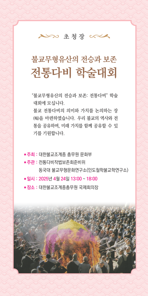 Á¶°èÁ¾ Ãѹ«¿ø ¹®ÈºÎ(ºÎÀå Çý°ø ½º´Ô)´Â ÀüÅë´ÙºñÀÛ¹ýº¸Á¸È¸(ÁØ), µ¿±¹´ë ºÒ±³¹«Çü¹®È¿¬±¸¼Ò(ÀεµÃ¶Çкұ³Çבּ¸¼Ò)¿Í °øµ¿À¸·Î ¡®ºÒ±³¹«ÇüÀ¯»êÀÇ Àü½Â°ú º¸Á¸ : ÀüÅë´Ùºñ Çмú´ëȸ¡¯¸¦ °³ÃÖÇÑ´Ù.