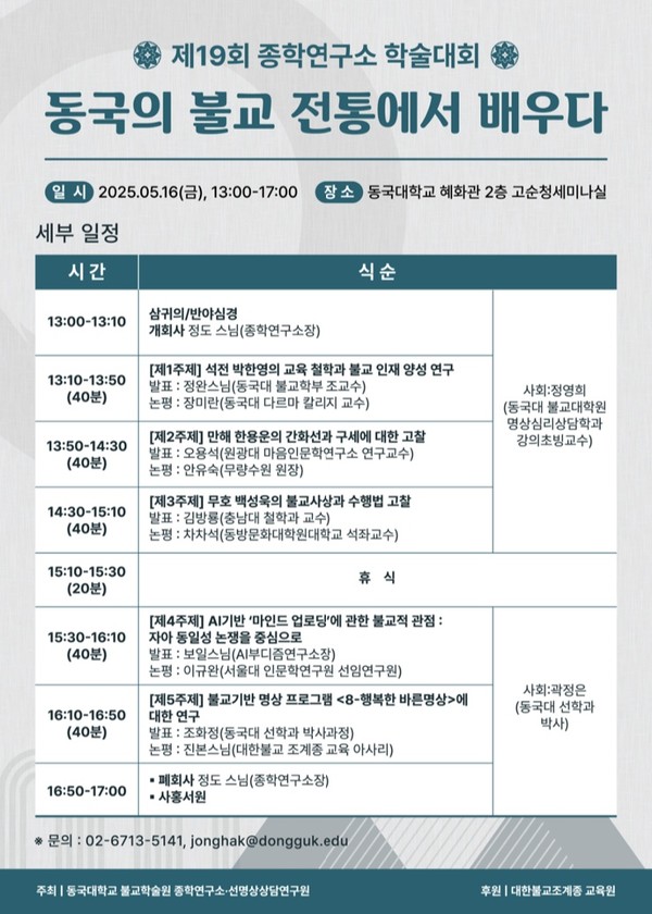 AIºÎµðÁò¿¬±¸¼ÒÀå º¸ÀÏ ½º´ÔÀÌ Á¦4 ÁÖÁ¦ ¡®AI ±â¹Ý ¸¶ÀÎµå ¾÷·Îµù¿¡ ´ëÇÑ ºÒ±³Àû °üÁ¡: ÀÚ¾Æ µ¿Àϼº ³íÀïÀ» Áß½ÉÀ¸·Î¡¯¸¦ ¹ßÇ¥Çϸç, Á¶ÈÁ¤ ¹Ú»ç°úÁ¤(µ¿±¹´ë ¼±Çаú)ÀÌ Á¦5 ÁÖÁ¦ ¡®ºÒ±³ ±â¹Ý ¸í»ó ÇÁ·Î±×·¥ <8-ÇູÇÑ ¹Ù¸¥¸í»ó>¿¡ ´ëÇÑ ¿¬±¸¡¯ÀÇ ¹ßÇ¥¸¦ ¸Ã´Â´Ù.