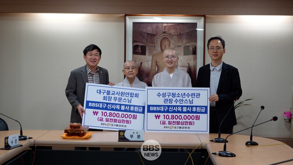 »çÁø ÁÂÃøºÎÅÍ BBS´ë±¸ºÒ±³¹æ¼Û ¹ÚÄ¡¹Î ÃѰý±¹Àå, ´ë±¸ºÒ±³»ç¿ø¿¬ÇÕȸ ȸÀå ¹«¹®½º´Ô, ¼ö¼º±¸Ã»¼Ò³â¼ö·Ã°ü °üÀå ¼ö¾È½º´Ô, BBS´ë±¸ºÒ±³¹æ¼Û ¹Ú¸íÇÑ ¹æ¼ÛºÎÀå´ë±¸ºÒ±³»ç¿ø¿¬ÇÕȸ ȸÀå ¹«¹®½º´Ô°ú ½º´ÔÀÇ »óÁ ¼ö¾È½º´ÔÀÌ ÇÔ²² BBS´ë±¸ºÒ±³¹æ¼Û »ç¿Á °Ç¸³ ºÒ»ç¿¡ ÈûÀ» º¸ÅɽÀ´Ï´Ù.¹«¹®½º´ÔÀº ¿À´Ã(30ÀÏ) ´ë±¸ºÒ±³»ç¿ø¿¬ÇÕȸ ȸÀǽǿ¡¼ ¹ÚÄ¡¹Î ´ë±¸ºÒ±³¹æ¼Û ÃѰý±¹Àå¿¡°Ô »ç¿Á °Ç¸³ ±â±Ý 1,080¸¸¿øÀ» Àü´ÞÇß½À´Ï´Ù.¹«¹®½º´ÔÀº ¡°ºÒ±³¹æ¼ÛÀº Áö¿ª Æ÷±³¿Í ºÎó´Ô °¡¸£Ä§À» ÀüÇÏ´Â ±ÍÇÑ ¿ªÇÒÀ» Çϰí ÀÖ´Ù¡±¸ç ¡°»õ·Î¿î »ç¿ÁÀÌ Àß °Ç¸³µÇ¾î ´ë±¸¡¤°æºÏ ºÒÀڵ鿡°Ô Èñ¸Á°ú Æò¾ÈÀ» ÁÖ±æ ¹Ù¶õ´Ù¡±°í ´çºÎÇß½À´Ï´Ù.¶Ç BBS ¶óµð¿À ¡®Èú¸µ ¶óµð¿À, ½°¡¯ ÁøÇàÀÚÀÌÀÚ ¼ö¼º±¸Ã»¼Ò³â¼ö·Ã°ü °üÀåÀÎ ¼ö¾È½º´Ôµµ 1,080¸¸¿øÀ» µ¿ÂüÇÏ¸ç »ç¿Á °Ç¸³¿¡ ¸¶À½À» º¸ÅɽÀ´Ï´Ù.¼ö¾È½º´ÔÀº ¡°»ç¿Á °Ç¸³Àº ´Ü¼øÇÑ °Ç¹° °Ç¸³ÀÌ ¾Æ´Ï¶ó ºÎó´ÔÀÇ ¹ýÀ½À» ¼¼»ó¿¡ ÀüÇÏ´Â Å« ÀÏ¡±À̶ó¸ç ¡°¸¹Àº ºÒÀÚµéÀÌ ÇÔ²² ¸¶À½À» ¸ð¾ÆÁÖ±æ ¹Ù¶õ´Ù¡±°í ¹àÇû½À´Ï´Ù.¾Õ¼ Àü±¹ºñ±¸´Ïȸ ´ë±¸Áöȸµµ ÃÖ±Ù Á¤±âȸÀÇ¿¡¼ ÁöȸÀå ¼º¿¬½º´ÔÀ» ºñ·ÔÇÑ ½º´Ô 12¸íÀÌ »ç¿Á °Ç¸³¿¡ µ¿ÂüÇÏ¸ç ºÒ»çÀÇ ¿ø¸¸ ȸÇâÀ» ¹ß¿øÇß½À´Ï´Ù.( bbs 2025.06.30 )