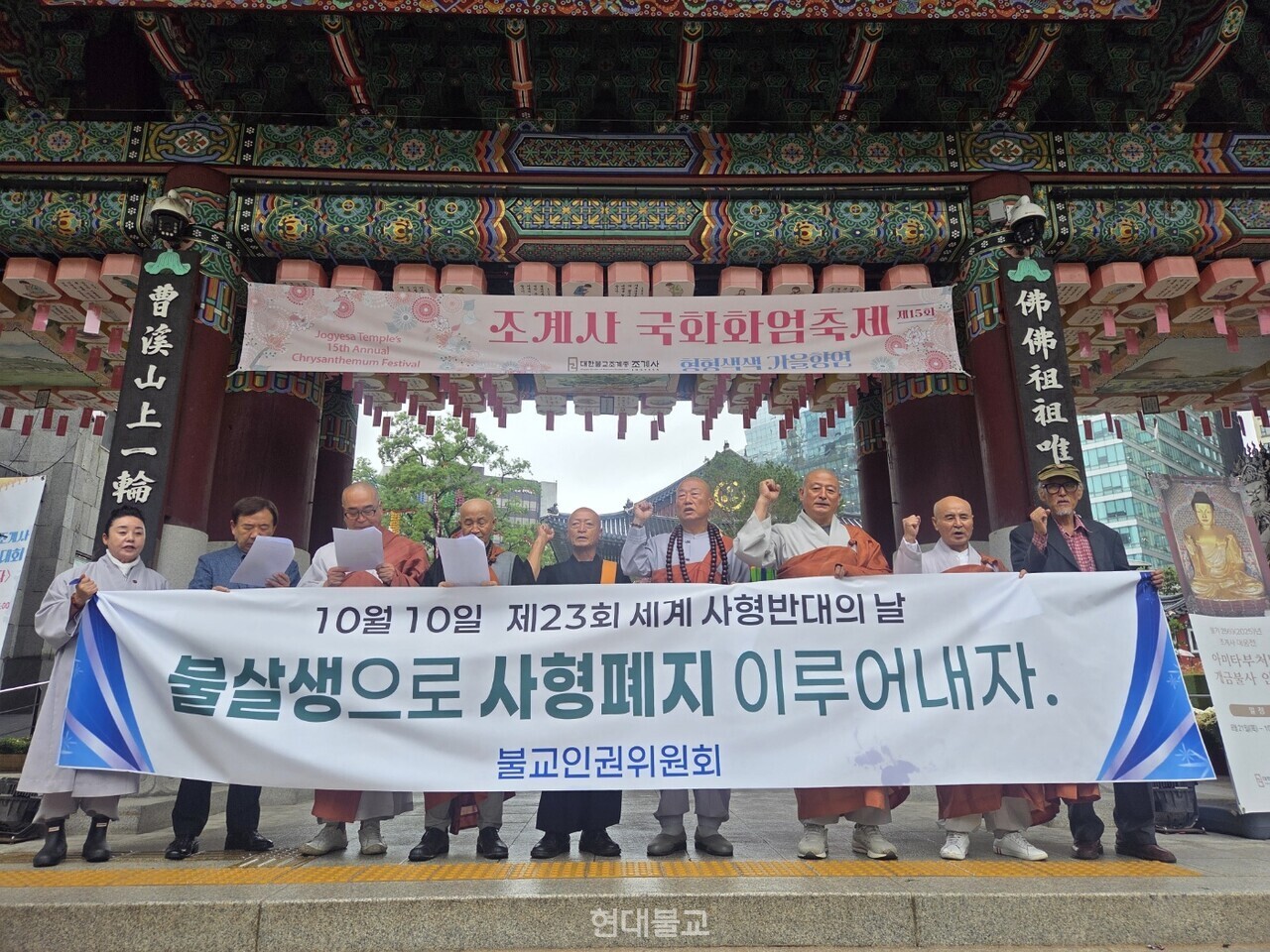 10¿ù 10ÀÏ Á¦23ȸ ¼¼°è »çÇü ÆóÁöÀÇ ³¯À» ¸Â¾Æ ºÒ±³ÀαÇÀ§¿øÈ¸(°øµ¿´ëÇ¥ Áø°ü‧µµ°ü ½º´Ô)°¡ ¼­¿ï Á¶°è»ç ÀÏÁÖ¹® ¾Õ¿¡¼­ ±âÀÚȸ°ßÀ» ¿­°í »çÇüÁ¦ Áï°¢ ÆóÁö¸¦ Ã˱¸ÇÏ´Â ¼º¸íÀ» ¹ßÇ¥Çß´Ù.