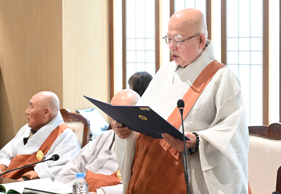 Á¶°èÁ¾ ¿ø·ÎȸÀÇ(ÀÇÀå ºÒ¿µ ÀÚ±¤´ëÁ¾»ç)´Â 4¿ù22ÀÏ Çѱ¹ºÒ±³¿ª»ç¹®È­±â³ä°ü 4Ãþ ´ëȸÀǽǿ¡¼­ Á¦81Â÷ ȸÀǸ¦ ¿­°í À̰°ÀÌ ½ÅÀÓ ¿ø·ÎÀÇ¿ø ¼±ÃâÀÇ °ÇÀ» ¸¸ÀåÀÏÄ¡·Î ÀǰáÇß´Ù. ¡®¿ø·ÎȸÀǹý¡¯¿¡ µû¶ó ¿ø·ÎȸÀÇ ÀÇ¿øÀº Áß¾ÓÁ¾È¸ ÃßõÀ¸·Î ¿ø·ÎȸÀÇ¿¡¼­ ÀçÀû °ú¹Ý¼ö Ãâ¼®°ú Ãâ¼® 3ºÐÀÇ2 ÀÌ»óÀÇ Âù¼ºÀ¸·Î ¼±ÃâÇÑ´Ù. ÀÓ±â´Â 10³âÀ̸ç ÁßÀÓÇÒ ¼ö ¾ø´Ù.