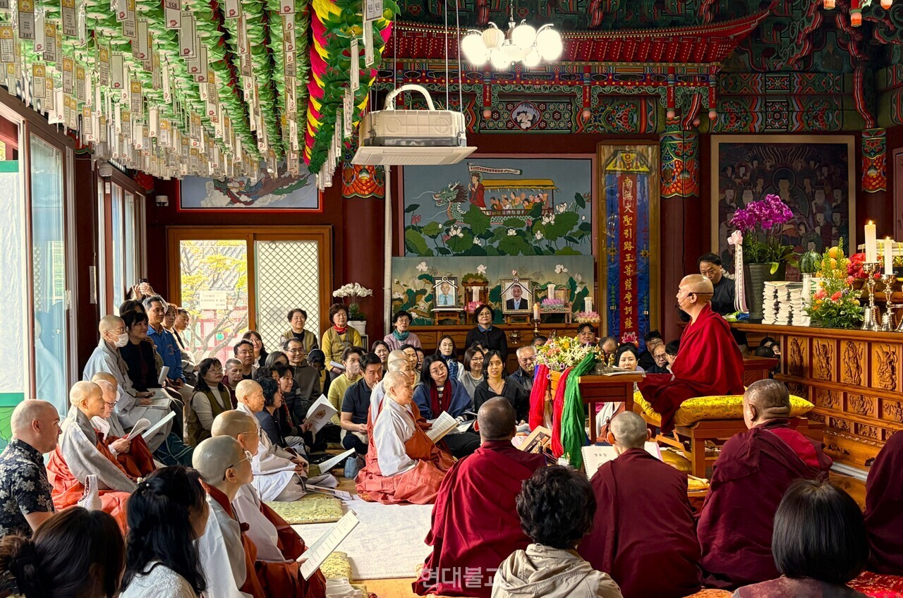 °æ±â ¿ëÀÎ ¼öÁö ¹ý·û»ç(ÁÖÁö ÀϹ® ½º´Ô)°¡ 4¿ù 22ÀÏ ¼¼°èÀûÀÎ ¸í»ó ÁöµµÀÚÀÎ ¿æ°ÔÀÌ ¹Ö±Ô¸£ ¸°Æ÷ü¸¦ ÃÊÃ»ÇØ ¡®±î¸£¸¶ ±ôâ ±î±Ô ¸¶ÇϹ«µå¶ó »ç°¡ÇàÀÇ ±¸Àü°ú °¡¸£Ä§¡¯À» ÁÖÁ¦·Î Ưº° ¹ýȸ¸¦ ºÀÇàÇß´Ù. À̴ Ƽº£Æ® ºÒ±³ÀÇ ÃÖ»ó½Â ¼öÇàü°èÀÎ ¡®¸¶ÇϹ«µå¶ó(Mahamydra)¡¯¿¡ µé¾î°¡±â ÀÌÀü ¾÷À» Á¤ÈÇÏ°í °ø´öÀ» ½×¾Æ ¸¶À½ÀÇ ±×¸©À» ÁغñÇÏ´Â °úÁ¤ÀÎ ¿¹ºñ¼öÇà(»ç°¡Çà)À» ÀǹÌÇÑ´Ù.