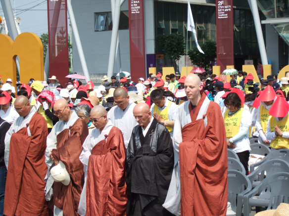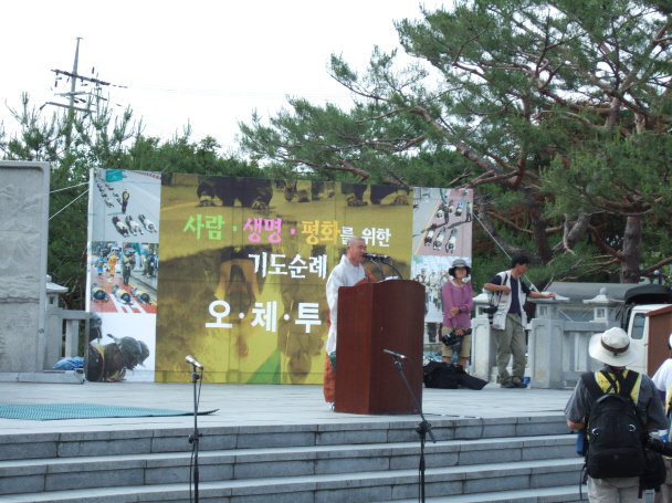 »ç¶÷, »ý¸í, ÆòÈ­ÀÇ ±æÀ» ã¾Æ ³ª¼± ¿ÀüÅõÁö¼ø·Ê°¡ 6ÀÏ ÀÓÁø°¢ ¸Á¹è´Ü¿¡¼­ ȸÇâÀ» ÇÏ°Ô µÇ¾ú´Âµ¥ ±×°÷¿¡¼­  Çö°¢½º´Ô(ºÒ±³È¯°æ¿¬´ë ÁýÇàÀ§¿øÀå)ÀÌ ½Ã±¹¼±¾ð¹®À» ³¶µ¶ÇÏ°í °è¼Ì´Ù. ±×¸®°í Á¤¹ü½º´Ô(Á¶°èÁ¾ Á¾È¸ÀÇ¿ø) µî ½º´Ôµé°ú ½Åµµµéµµ 100¿©¸í Âü¼®ÇÏ¿© ¿©¹ýÇÏ°Ô È¸ÇâÀ» ÇÏ¿´´Ù.