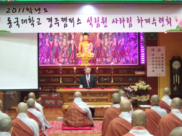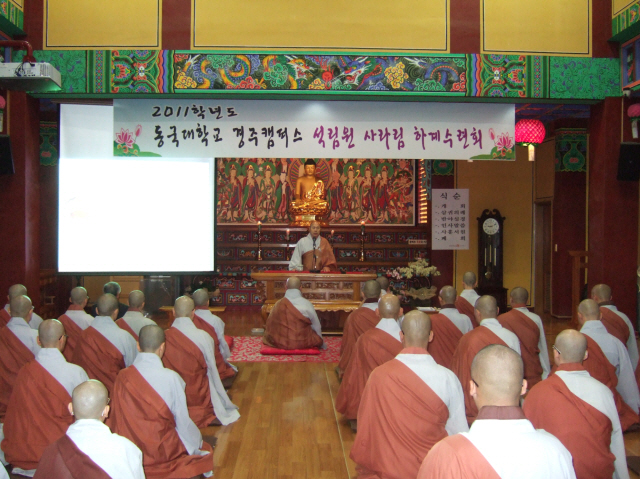 9¿ù 3ÀÏ µ¿±¹´ë °æÁÖÄ·ÆÛ½º Á¤°¢¿ø¿¡¼­ 2555³â ÇϾȰм®¸²È¸ ¿¬¼ö°¡ ½ÃÀ۵Ǿú´Ù. ¼®¸²µ¿¹®È¸¿¡¼­´Â »ç¹«ÃÑÀå ÀåÀû½º´Ô, Ãѹ«ºÎÀå Á¤¹ü½º´ÔÀÌ µ¿ÂüÇϼ̰í, Á¤°¢¿øÀå È­¶û½º´Ô, µ¿´ë ±è¿µÁ¾ ÃÑÀå´Ô ¹× ¿î¿µº»ºÎÀå´Ô µîµµ ÇÔ²² Çϼ̴Ù. ¿¬¼ö´Â 1¹Ú 2ÀÏ ÀÏÁ¤À¸·Î ÁøÇàµÇ¾úÀ¸¸ç, Á¶°èÁ¾ÀÇ ÀüÅ뼺, ½ÀÀÇ, »ó´ã½É¸® µîÀ» ±³À°¿øÀå ÇöÀÀ½º´Ô µî Àú¸íÇÑ °­»çÁøÀ» ¸ð½Ã°í ¿¬¼ö¸¦ ÁøÇàÇÏ¿´´Ù.