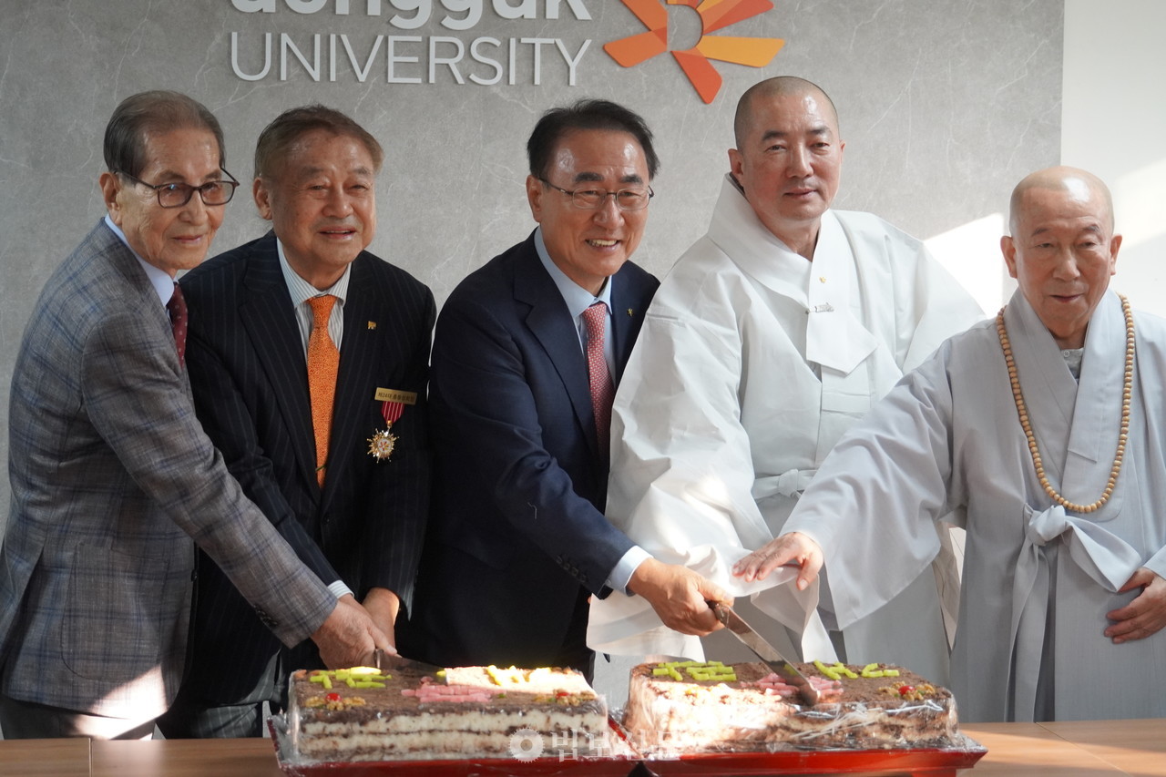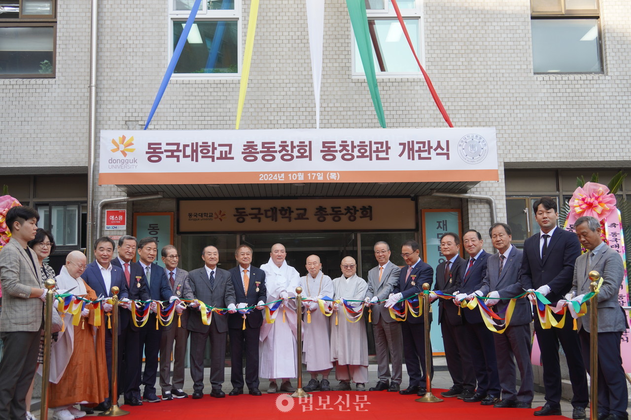 Ãæ¹«·Î ¿µ»ó¼¾ÅÍ °Ç¹° ¾Õ¿¡¼­ ½ÃÀÛµÈ °³°ü½Ä¿¡ ÀÌ¾î µ¿±¹´ë ÀÌ»çÀå µ·°ü ½º´Ô, À±Àç¿õ ÃÑÀå µîÀº ³»ºóµé°ú ÇÔ²² 5Ãþ¿¡ ¸¶·ÃµÈ µ¿Ã¢È¸°ü ȸÀǽÇÀ» µÑ·¯º¸´Â ½Ã°£À» °¡Á³´Ù.