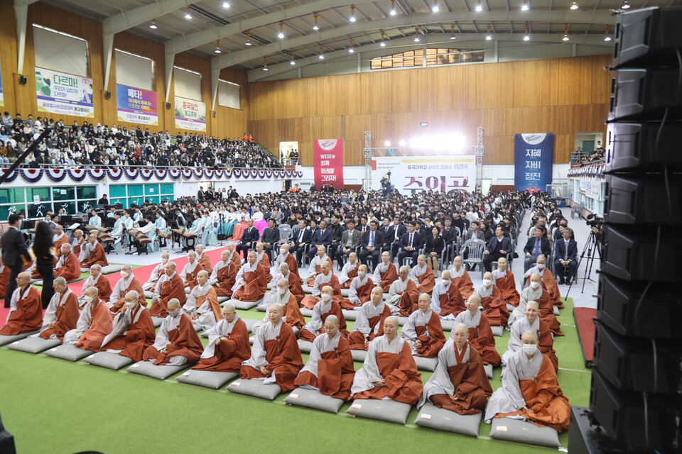 ¼ö°è¹ýȸ´Â Àü°è´ëÈ­»óÀ¸·Î ÀÌ»çÀå µ·°ü½º´ÔÀ» Ã»ÇØ ÁøÇàµÆ´Ù. µ·°ü½º´ÔÀº ¼ö°èÀǽĿ¡ ¾Õ¼­ ¡°ÀÌ ÀÚ¸®´Â µ¿±¹´ë ¿ÍÀÌÁîÄ·ÆÛ½º ÁÖÀΰø 1800¸íÀÌ °­¸²ÇÏ´Â ¼ø°£ÀÌ´Ù. ÀÌ ¼ø°£Àº µ¿±¹ 118Ò´ ¿ª»ç¿¡ ±â·ÏµÉ °ÍÀÌ¸ç ¡®°¨µ¿¡¯À̶ó´Â µÎ ±ÛÀڷΠǥÇöµÉ °ÍÀÌ´Ù¡±¶ó°í ¸»Çß´Ù.