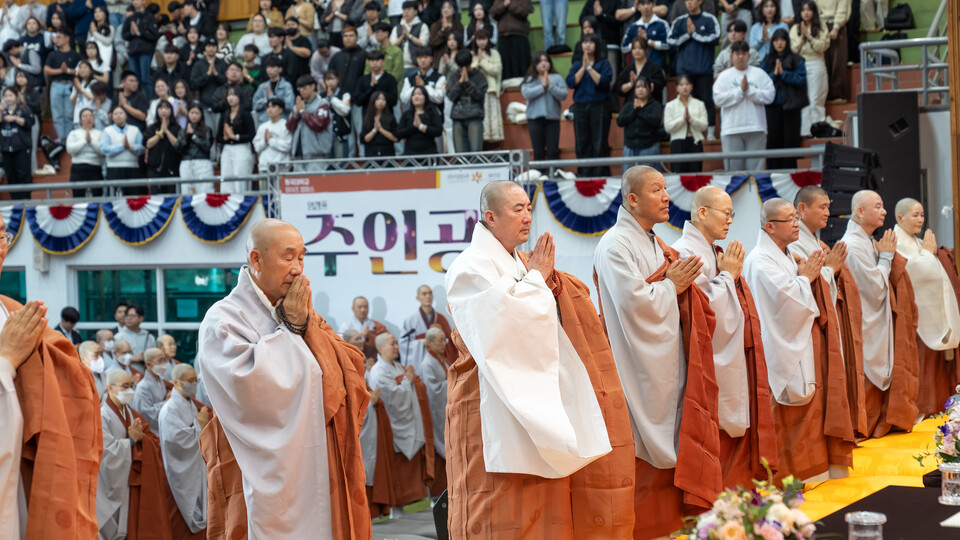 ¶ÇÇÑ µ¿±¹´ë ±³°­»ç ¹× ÇÐÀνº´Ô µî 90¿©¸íÀÇ ½º´ÔµéÀÌ ´ëÇлýµé¿¡°Ô ¿¬ºñ¸¦ ³»·È´Ù. ¿¬ºñ ÀǽÄÀº Çâ ´ë½Å ´ÜÁÖ¸¦ ä¿öÁÖ´Â ¹æ½ÄÀ¸·Î ÁøÇàµÆ´Ù.