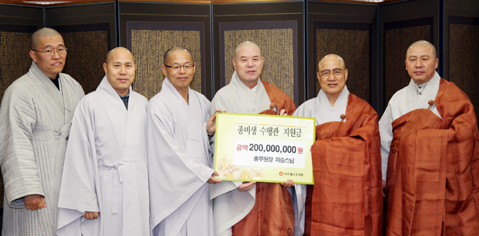 Á¶°èÁ¾(Ãѹ«¿øÀå Àڽ½º´Ô)Àº ÃÖ±Ù µ¿±¹´ë¿¡ Á¾ºñ»ý ¼öÇà°ü °Ç¸³±â±ÝÀ» Áö¿øÇß´Ù. Ãѹ«¿øÀå Àڽ½º´ÔÀº Áö³ 23ÀÏ Çѱ¹ºÒ±³¿ª»ç¹®È±â³ä°ü 4Ãþ¿¡¼ µ¿±¹´ë ÀÌ»çÀå Á¤·Ã½º´Ô¿¡°Ô ºñ±¸ ¼öÇà°üÀÎ ¹é»ó¿ø °Ç¸³ ±â±Ý 1¾ï ¿ø°ú ºñ±¸´Ï ¼öÇà°üÀÎ Çý±¤»ç ¼ö¸®±â±Ý 1¾ï ¿ø µî ÃÑ 2¾ï ¿øÀ» Àü´ÞÇß´Ù.