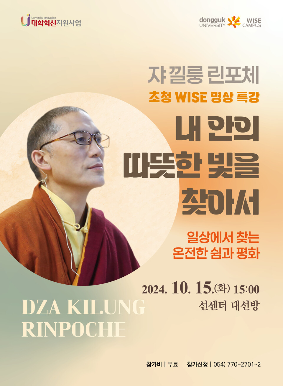 À̹ø WISE ¸í»ó Ư°­Àº °æÁÖ ½Ã¹Î ´©±¸³ª ¹«·á·Î Âü¿© °¡´ÉÇϸç, »çÀüÁ¢¼ö ¹× ÀÚ¼¼ÇÑ ¹®ÀÇ»çÇ×Àº µ¿±¹´ë WISEÄ·ÆÛ½º ¼±¼¾ÅÍ(054-770-2701~2)·Î ÀüÈ­ÇÏ¸é µÈ´Ù.