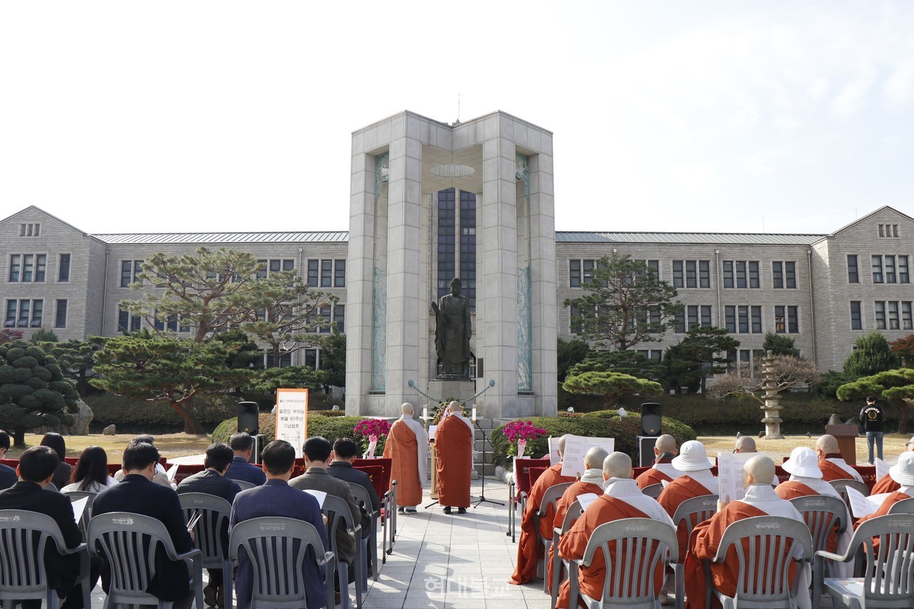 Çб³¹ýÀÎ µ¿±¹´ëÇб³ ÀÌ»çÀå µ·°ü½º´ÔÀº À̳¯ ¹ý¾î¸¦ ÅëÇØ ¡°ÆÈÁ¤µµ´Â ºÎó´ÔÀÇ ±ú´ÞÀ½¿¡ ´Ù°¡°¡´Â ½Çõ¼öÇà¹ýÀÌÀÚ À̻󼼰è·Î °¡´Â °¡Àå ¿Ã¹Ù¸¥ ±æ¡°À̶ó¸ç ¡°µÎ ¹ßÀ» °¡Áö·±È÷ ¼¼¿ì°í ¾ÕÀ¸·Î ³ª¾Æ°¡°íÀÚ Çϴ ûµ¿¼®°¡¿©·¡ÀÔ»óÀÇ ¸ð½À¿¡¼ ÆÈÁ¤µµÀÇ Àǹ̸¦ ´Ù½Ã±Ý ±ú´Ý°í, ÆÈÁ¤µµ¸¦ °Å´Ï´Â µ¿±¹ÀÎ ¸ðµÎ°¡ Á¤ÁøÇÏ¿© ºÎó´Ô °¡Çǰ¡ °¡µæÇÏ±æ ¹Ù¶õ´Ù¡±°í ¼³Çß´Ù.