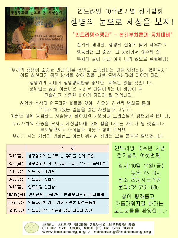 ¹ý»ç : µµ¹ý½º´Ô(Àεå¶ó¸Á»óÀÓ´ëÇ¥, »ý¸íÆòȭʹ߼ø·Ê´ÜÀå, Àü ½Ç»ó»ç ÁÖÁö)