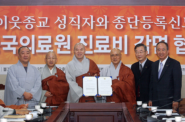 ´ëÇѺұ³Á¶°èÁ¾°ú µ¿±¹´ëÇб³ÀÇ·á¿øÀÌ 3¿ù9ÀÏ ¼ºÁ÷ÀÚ ¹× Á¾´Üµî·Ï ½Åµµ¿¡ ´ëÇÑ ÀÇ·áºñ °¨¸é Çù¾à½ÄÀ» ü°áÇß´Ù.